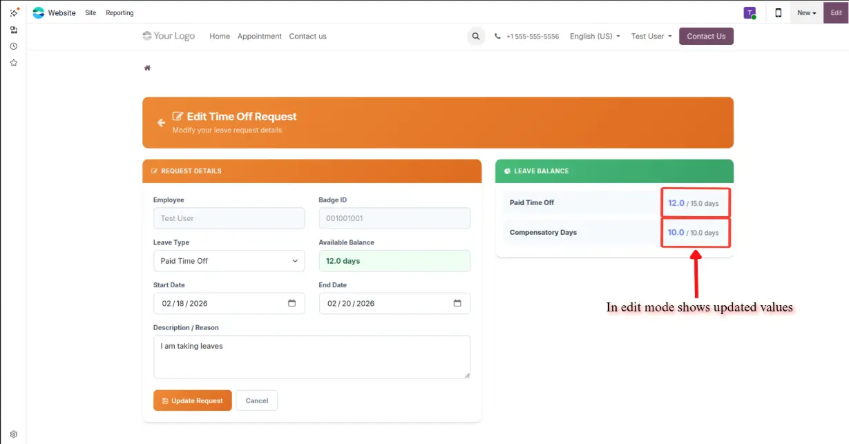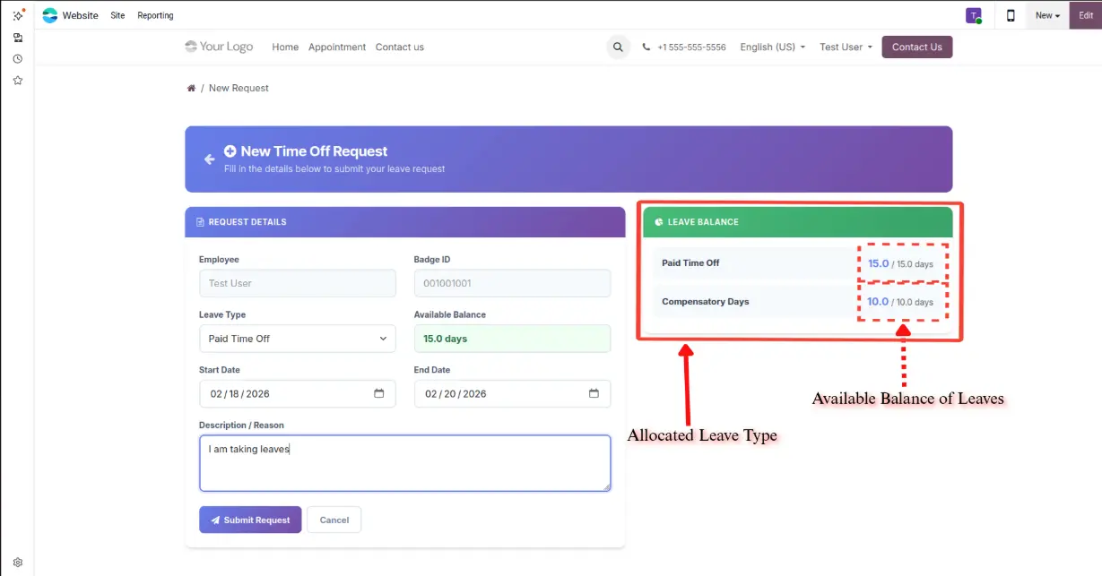 submit, track, and manage their leave requests directly from the Odoo portal.
